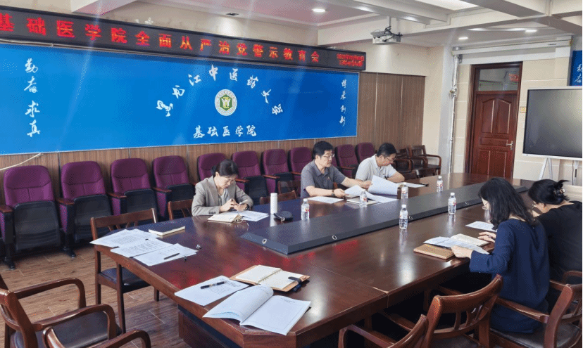 2025年9月9日,基础医学院在小会议室412召开基础医学院全面从严治党警示教育大会,刘斌书记主持会议,学院领导、党支部书记、普通教师参加会议。